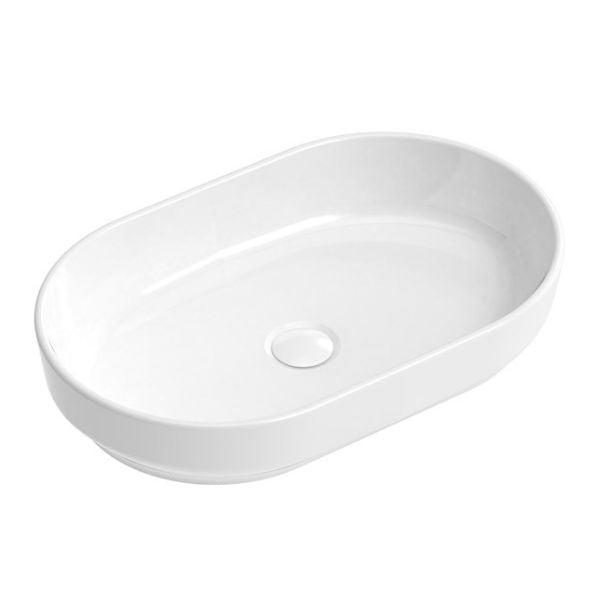 The ADP Marilyn 550 x 350 Semi-Inset Basin boasts a sleek and elegant pill-shaped design. Its glossy white finish adds a touch of sophistication to any bathroom. Crafted with precision, this basin offers both style and functionality.