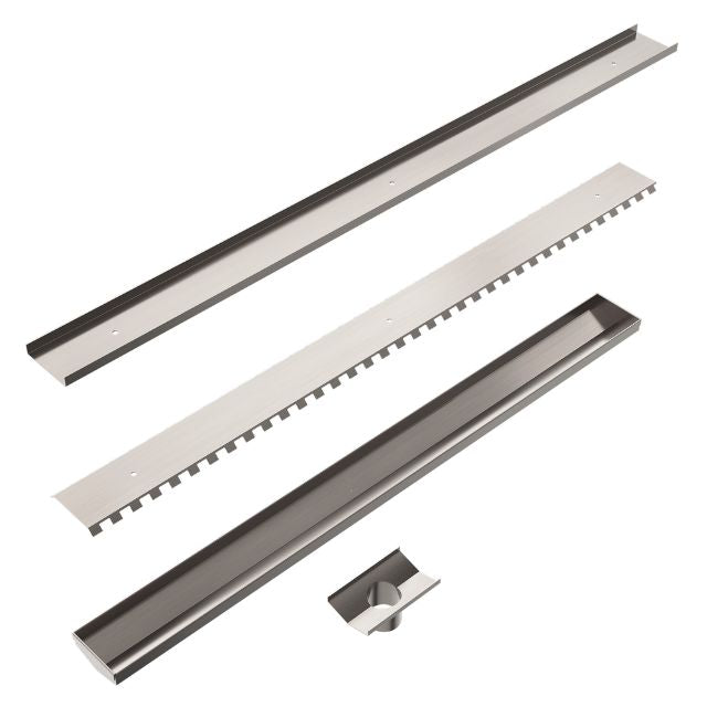 Nero Tile Insert V Channel 900x82mm Floor Grate 50mm Outlet Brushed Nickel