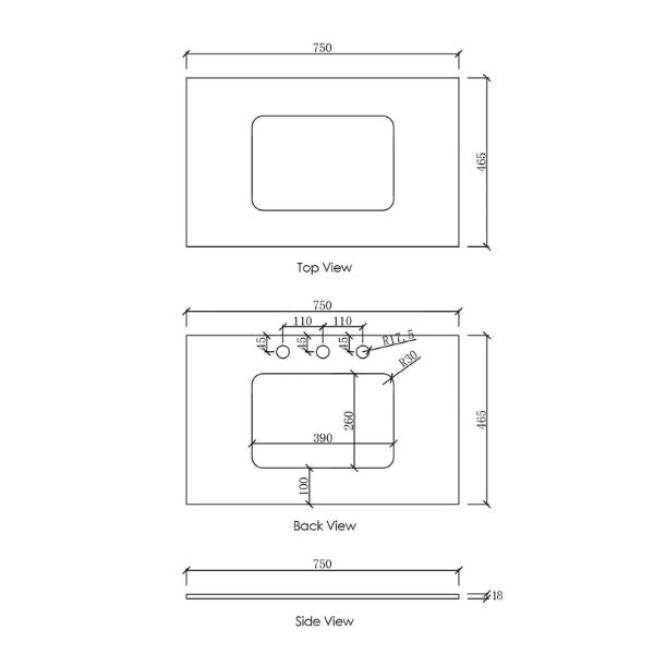 - Natural Carrara tops are only available with no tapholes, suitable for wall-mounted tapware