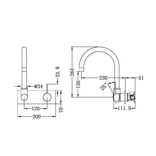 Nero Mecca Wall Basin/Bath Mixer Swivel Spout Handle Up Brushed Bronze