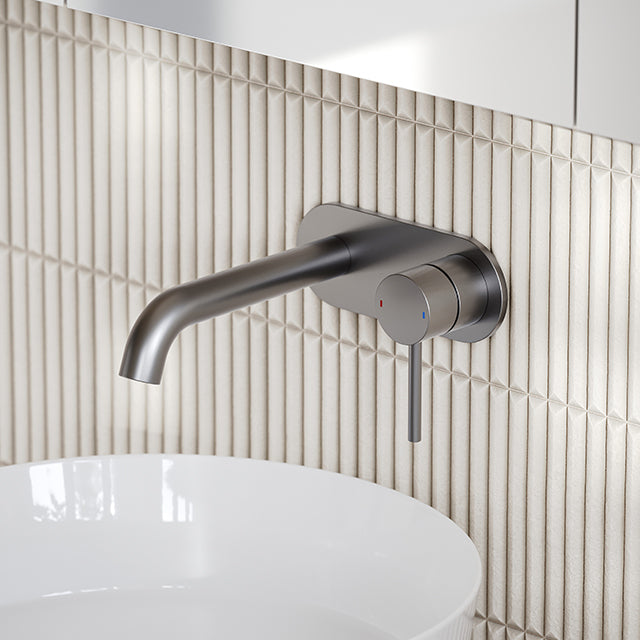 Caroma Liano II Low Lead Wall Basin/Bath Mixer Plate Set Gunmetal