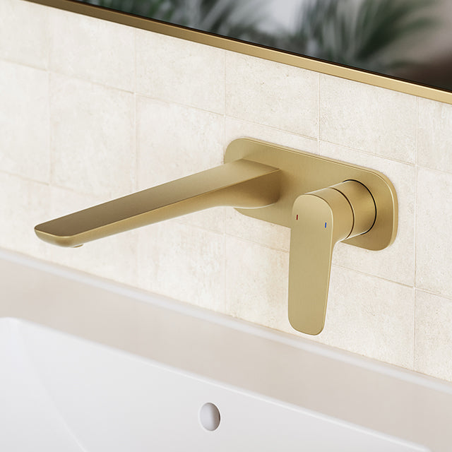 Caroma Contura II 180mm Wall Basin/Bath Mixer - Brushed Brass