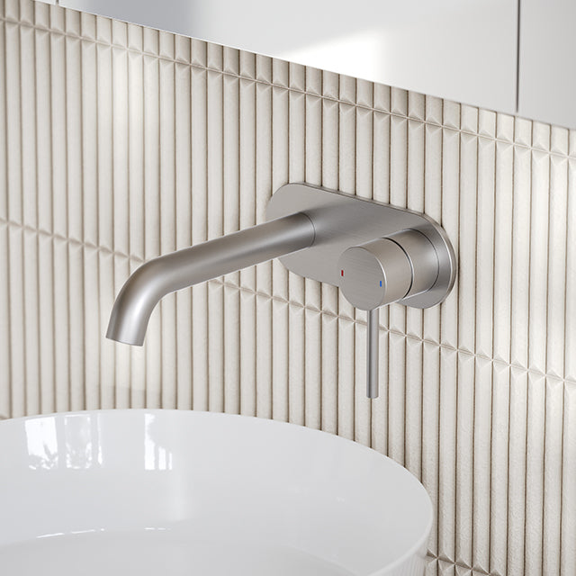 Caroma Liano II Lead Free Wall Basin/Bath Mixer Plate Set Brushed Nickel