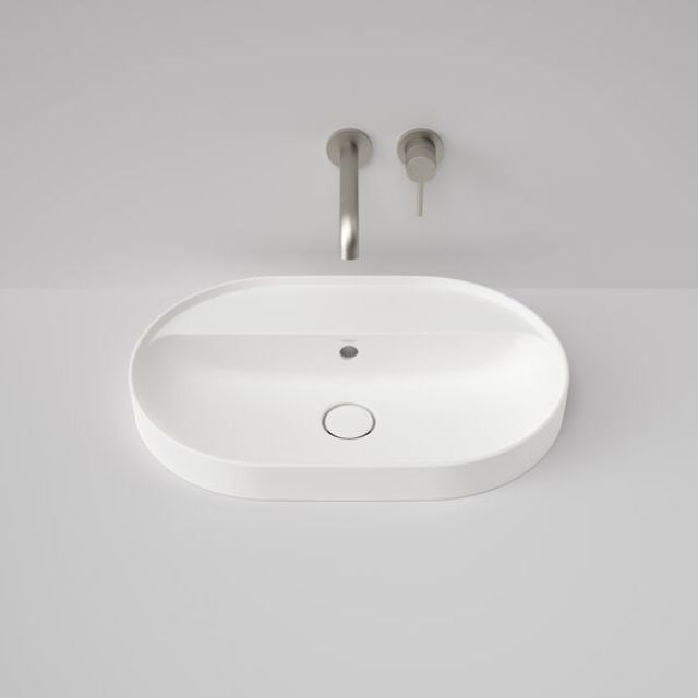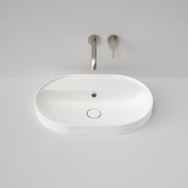 Caroma Liano II 600mm Pill Inset Basin with Tap Landing (0 Tap Hole) - Matte White (with Overflow)
