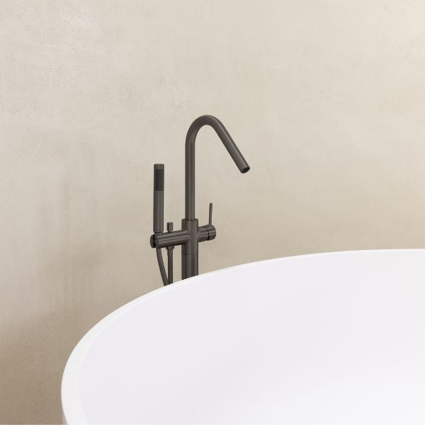Meir Round Freestanding Bath Spout and Hand Shower Shadow - The Blue Space