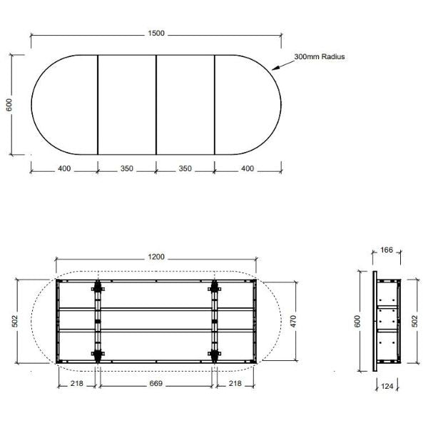 Timberline Ballad Shaving Cabinet 1500mm 4 Door
