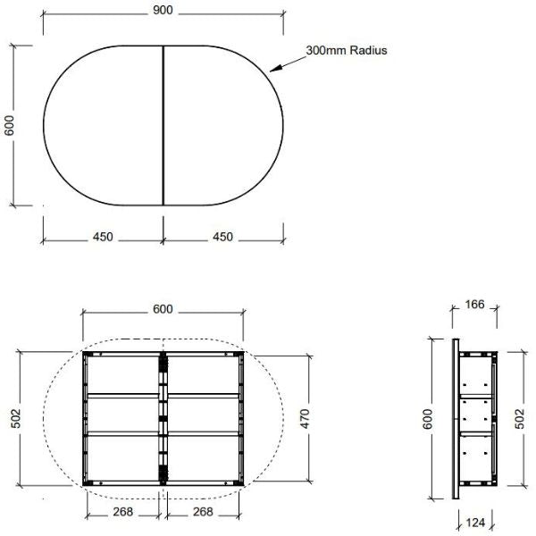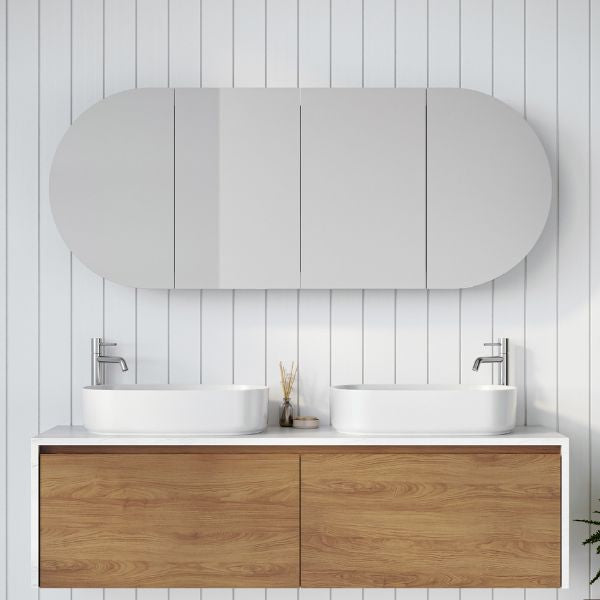 - A practical, horizontal pill shaped shaving cabinet for style without compromising on storage