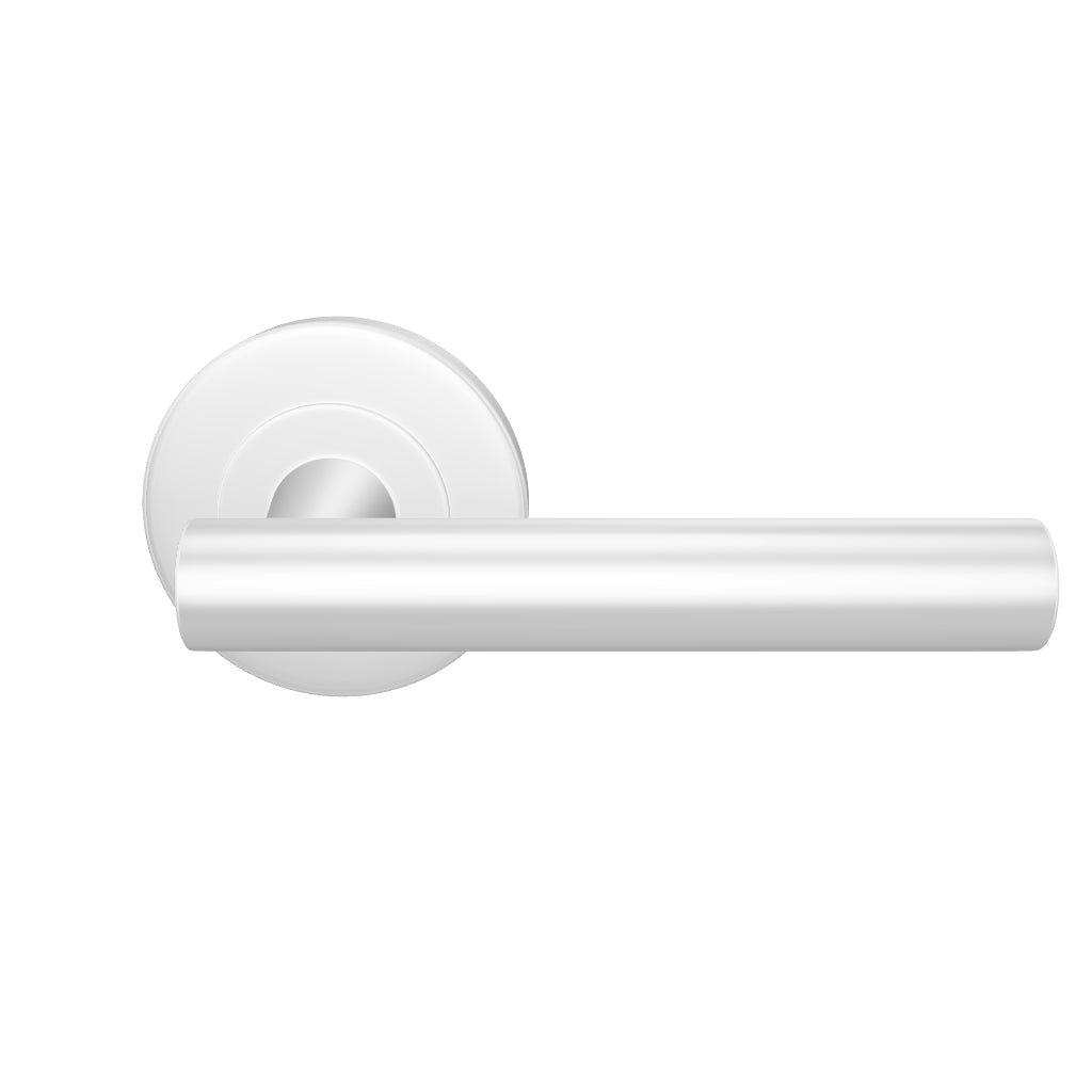 Lane Buckingham Dummy Lever Handle On Round Rosette BSC Box is a stylish lever handle for use on interior doors where only a push/pull function is required.