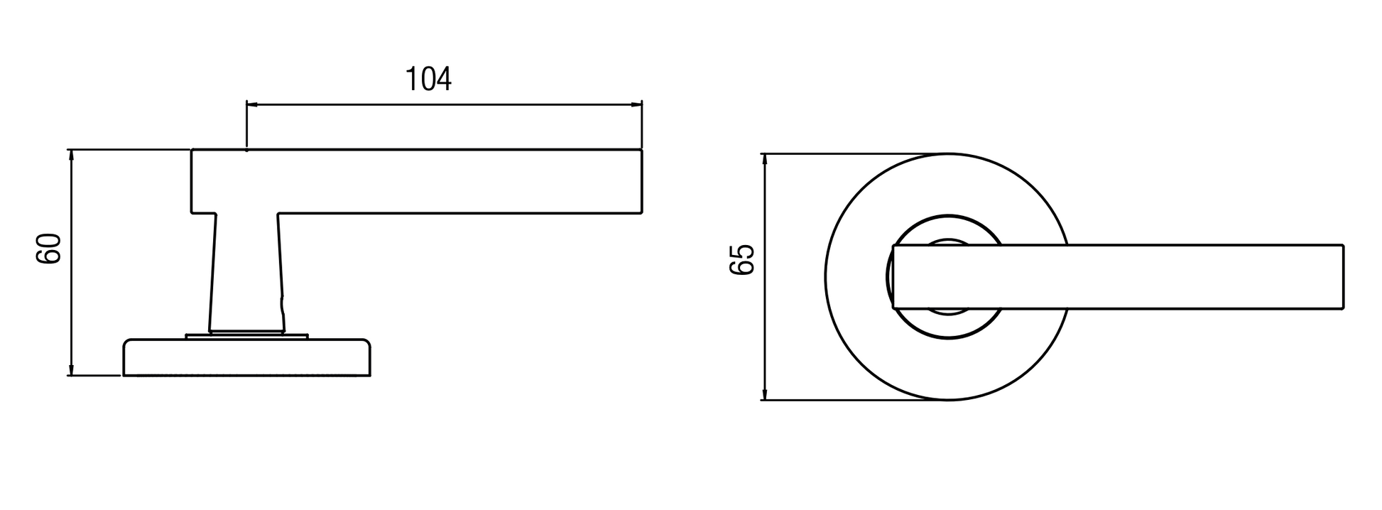 - Non-handed Door handle designed to rotate into the correct position for use on both left and right hand doors
