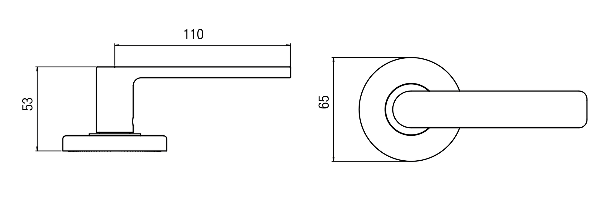 - A Non-handed Door handle, designed to rotate into the correct position for use on both left and right hand doors.