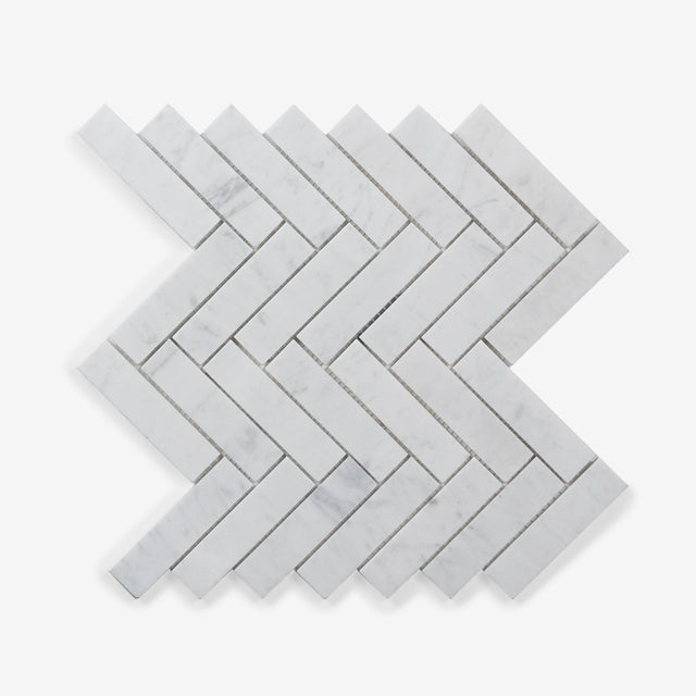 Carrara Gabriele Herringbone Honed Marble Mosaic 305 x 281 x 8mm