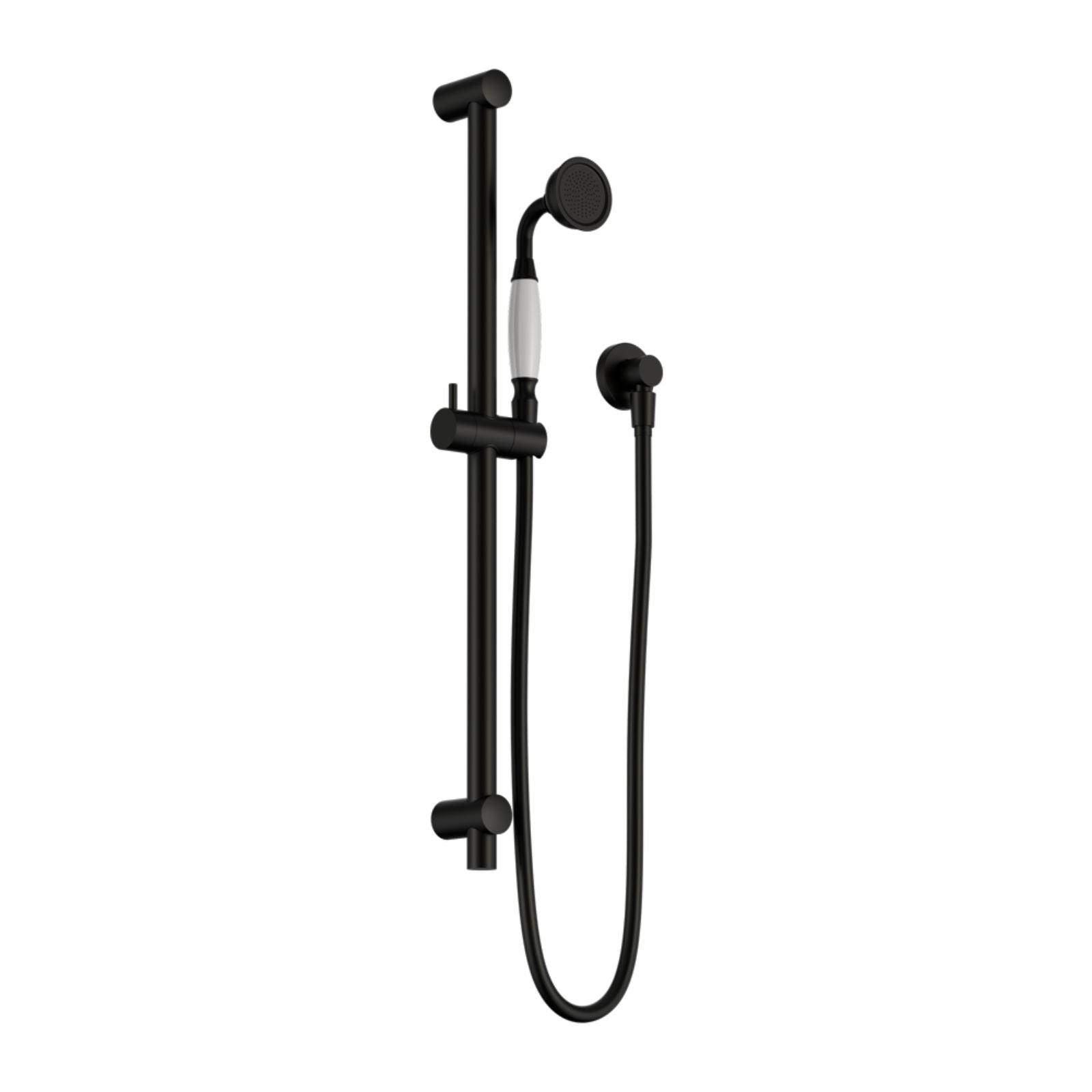 Nero York Shower Rail With White Porcelain Hand Shower Matte Black