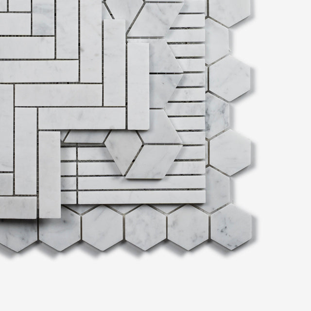 Carrara Gabriele Diamond Cube Honed Marble Mosaic 282 x 244 x 8mm