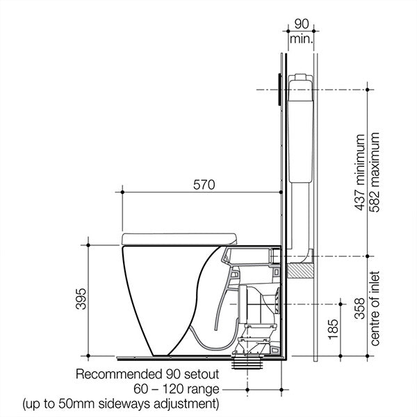 - Concealed cistern provides installation flexibility with options to be installed in a wall (min. 90mm cavity), under a counter top or in a duct/ceiling where the cistern can be accessed for service
