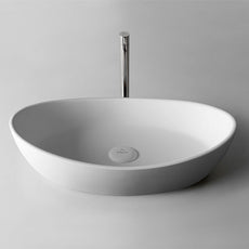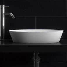 Stone solid surface basin in a matte white finish Oval shaped above counter basin design Matte White velvet smooth finish Easy to clean No tapho...