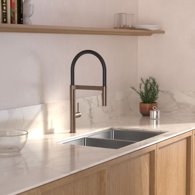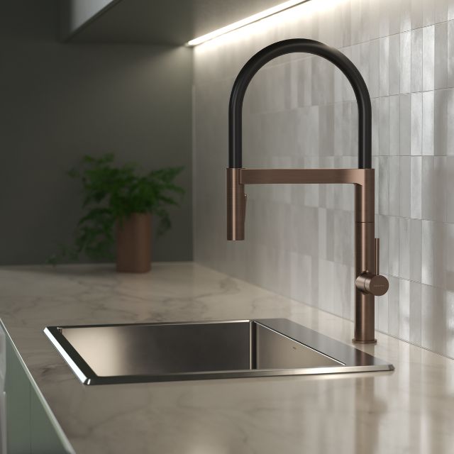 Caroma Liano II Pull Down Sink Mixer with Dual Spray - Brushed Bronze
