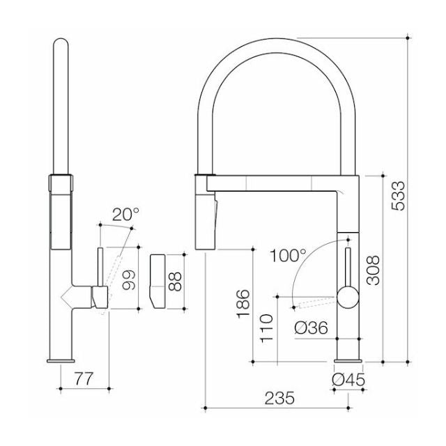 - Water efficient WELS 5 star flow rate (6L/min), with optional WELS 6 Star (4.5L/min) aerator supplied