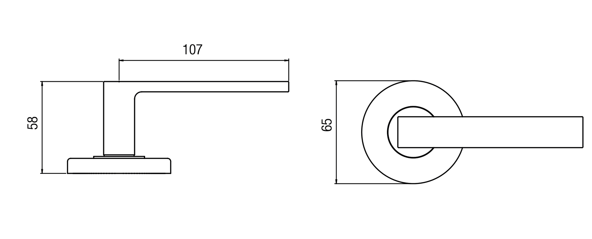 - A Non-handed Door handle, designed to rotate into the correct position for use on both left and right hand doors.