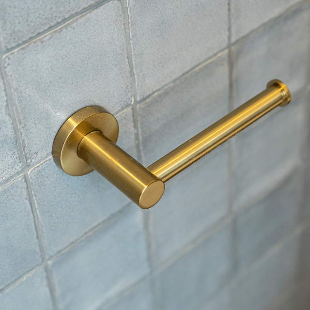 - Stunning brushed gold toilet roll holder in classic shape