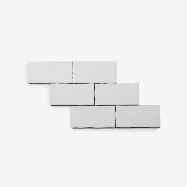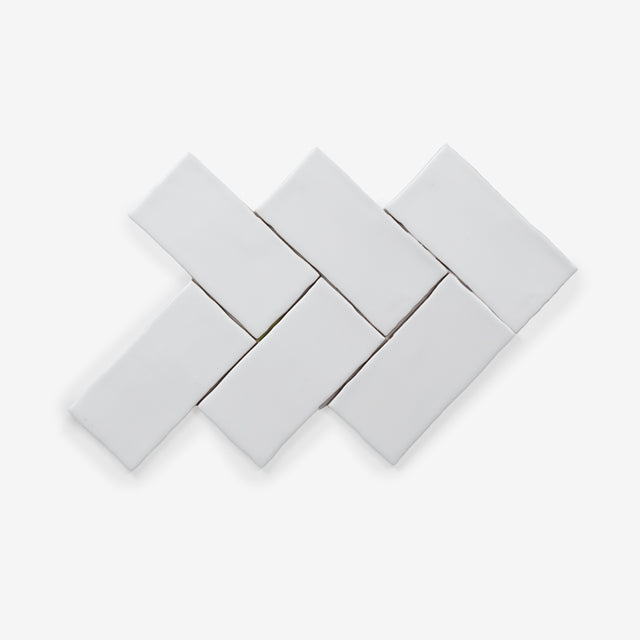 White Luca Hand Made Gloss Subway Tile 75 x 150 x 8mm