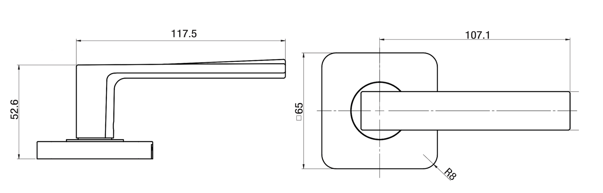 - A Non-handed Door handle, designed to rotate into the correct position for use on both left and right hand doors.