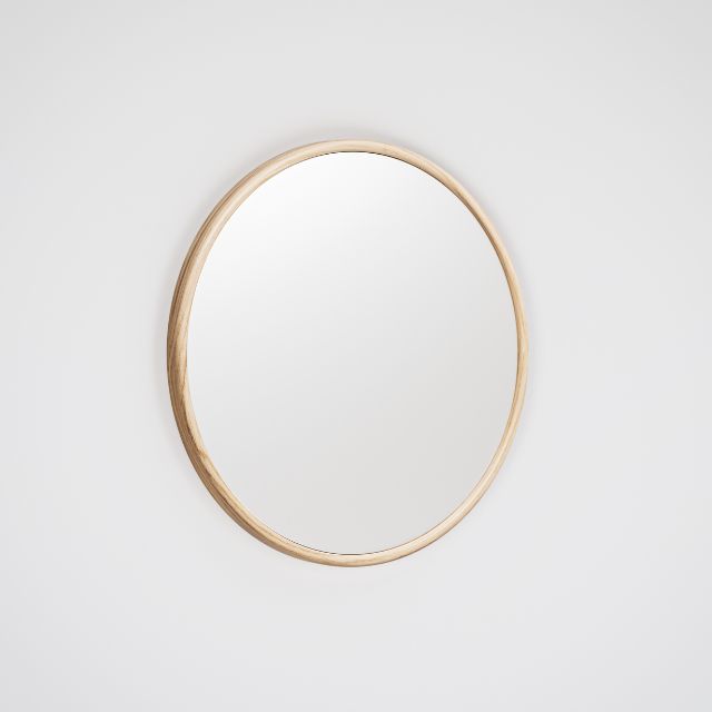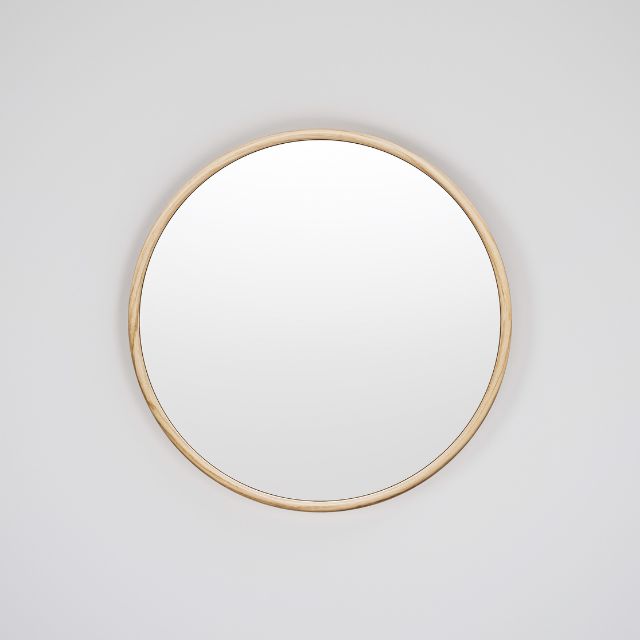 This Ingrain Timber Framed Round Mirror is a versatile and popular choice for any space. Made with natural timber and an ash-coloured, soft rounded frame profile, it is an elegant choice for any space. At 800mm in diameter, it's the perfect size for any room.