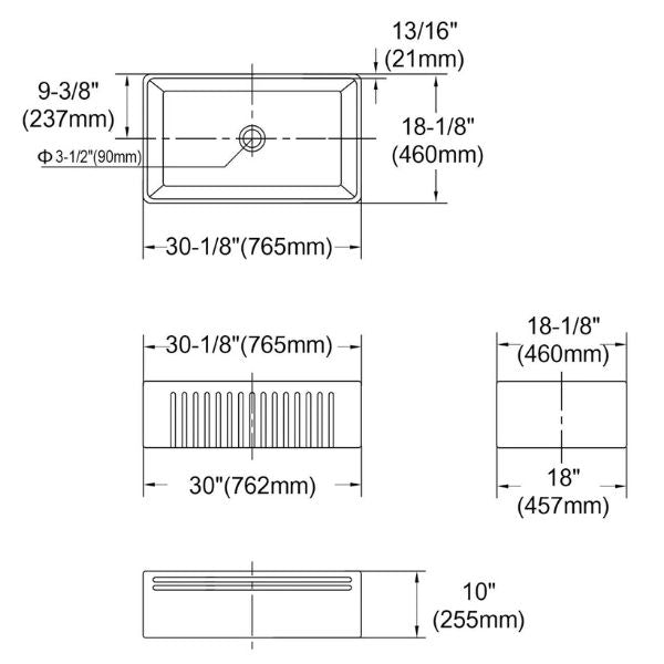 - Reversible Basin with 2 different facings available with Vertical Rib and Pencil Line facing