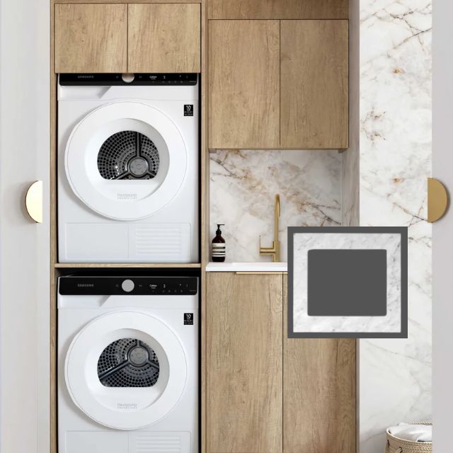 • Brushed Gold handle included, optional colours available in Matte Black, Brushed Nickel Purchased Separately - $20 per handle with laundry purchase.