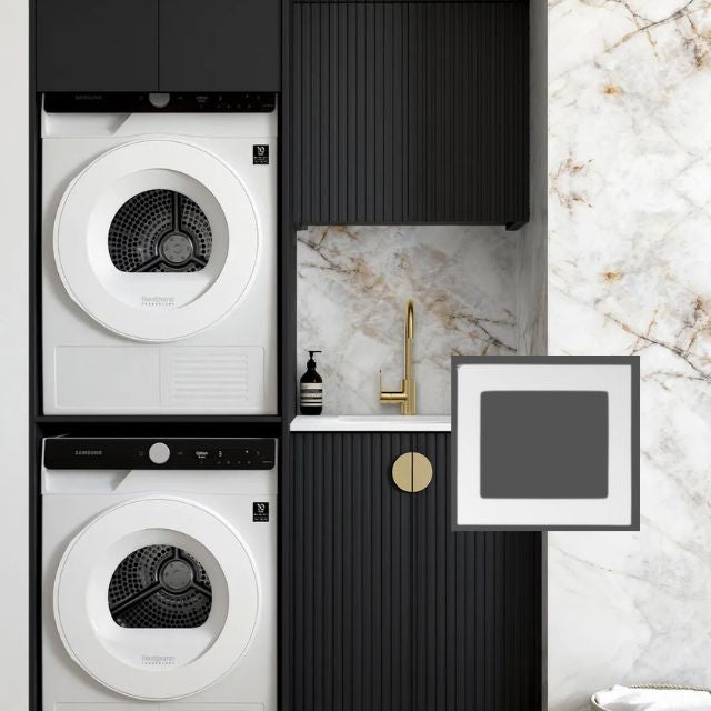 - Brushed Gold handle included, optional colours available in Matte Black, Chrome, and Gun Metal Purchased Separately - $20 per handle with laundry purchase.