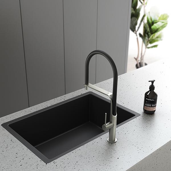 The Vido Flexible Hose Sink Mixer developed by the Australian Phoenix design team, features sophisticated forms and has been specially designed for freedom of movement to meet the needs of any household. If contemporary finishes are on your mind, Vido comes in Brushed Nickel, which is characterised by its warm, soft metallic appearance and brushed lines on its surface. This finish is a more toned-down look that pairs well with white, as well as light coloured granite or marble.