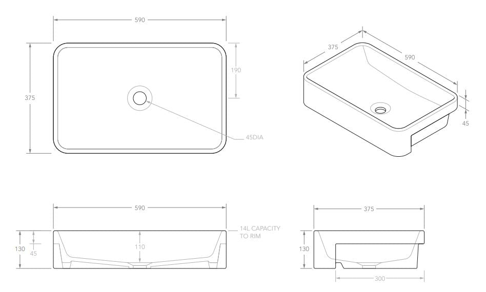 - Semi-recessed design sees the basin overhang the vanity for easier access