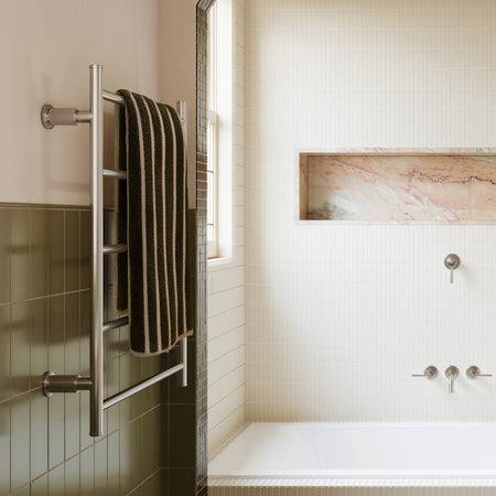 The Thermogroup 12V Round Vertical Single Bar Heated Towel Rail Brushed Nickel gives you reliable warmth without the worries of corrosion, leaks, or high electricity bills. Designed for energy efficiency, it offers safe, long-lasting performance with quality materials and a trusted low-voltage system. With simple installation and flexible wiring options, it’s an easy and stylish way to keep your towels warm every day.