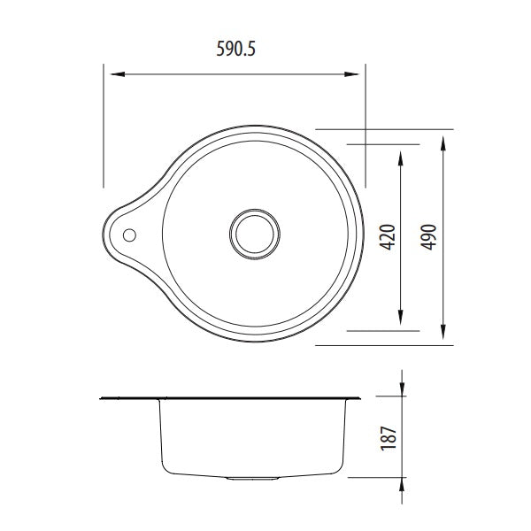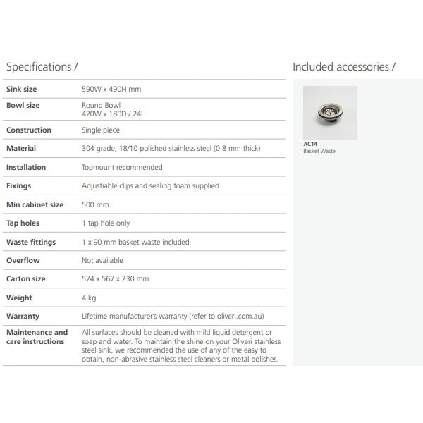 Oliveri Solitaire round bowl topmount sink with tap landing