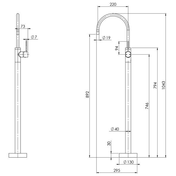 - Floor standing bath filler in gorgeous brushed nickel finish