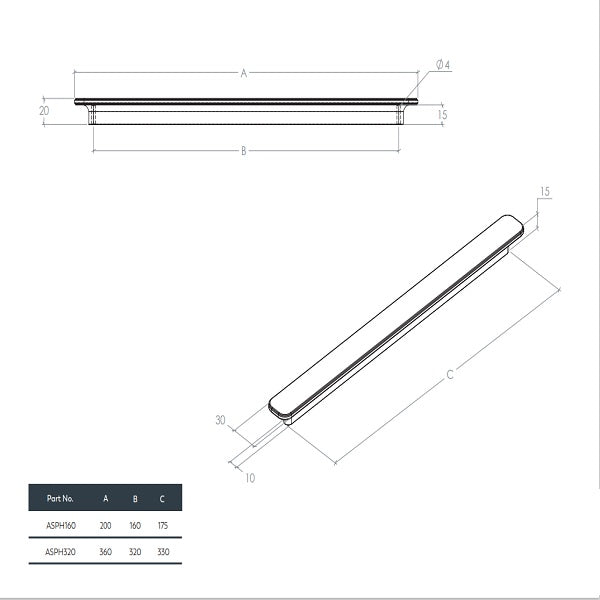- 160mm Size (Length x Projection in mm): 200 x 20