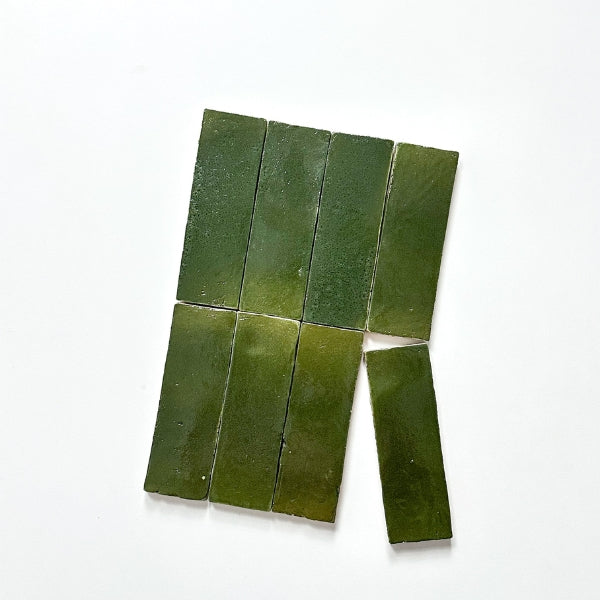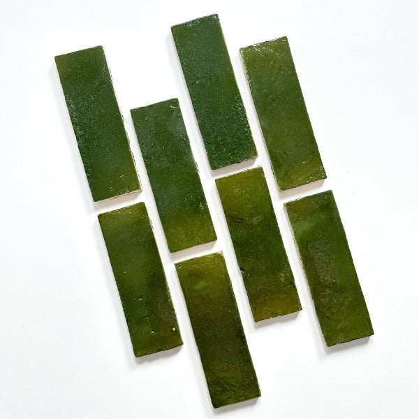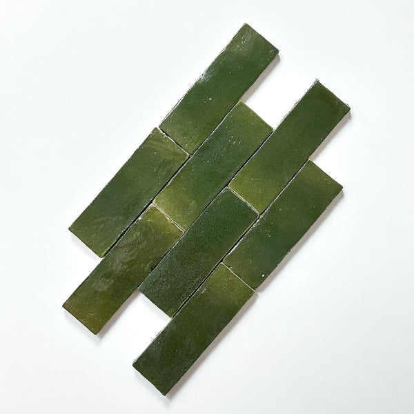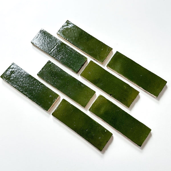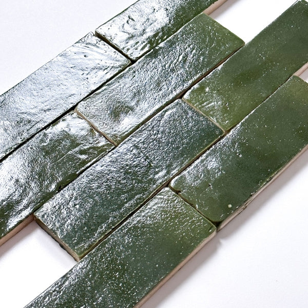 The Evelyn handmade bejmat ceramic tiles are made using artisanal techniques. They are hand moulded and shaped, with the colour glaze layer applied by a skilled craftsman. The Evelyn range has a wavy structured finish in a rich gloss glaze, bringing a beautiful and unique texture to any room. We offer 5 vibrant colours, and two sizes the 100x100mm Zellige and the 150x50mm Bejmat.