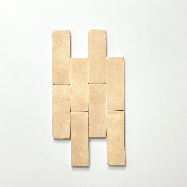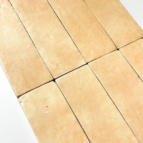 The Evelyn handmade bejmat ceramic tiles are made using artisanal techniques. They are hand moulded and shaped, with the colour glaze layer applied by a skilled craftsman. The Evelyn range has a wavy structured finish in a rich gloss or satin glaze, bringing a beautiful and unique texture to any room. We offer 5 vibrant colours, and two sizes the 100x100mm Zellige and the 150x50mm Bejmat.