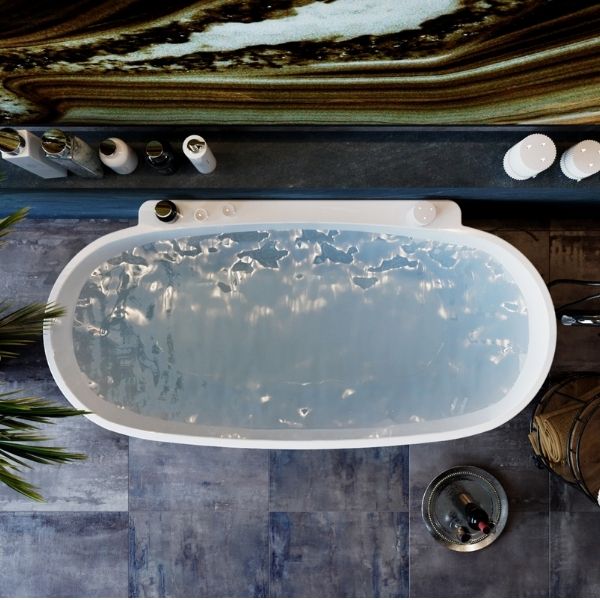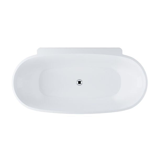 - Freestanding back to wall bath made from premium Sanitary Grade Acrylic
