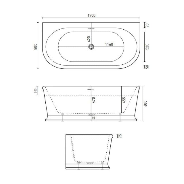 Decina Oxford 1700mm Back-To-Wall Freestanding Bath with Overflow