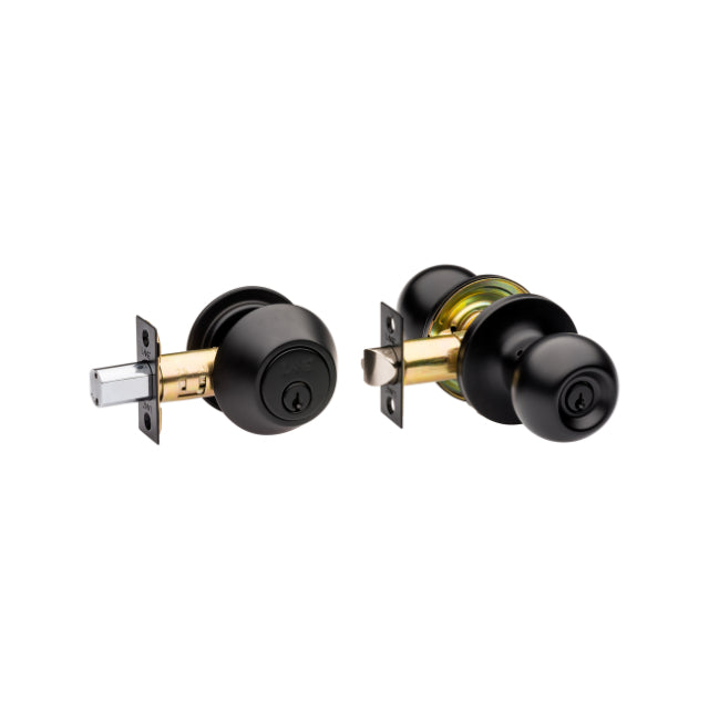Lane Bala Security Knob Door Handle Set Round Rosette Matte Black