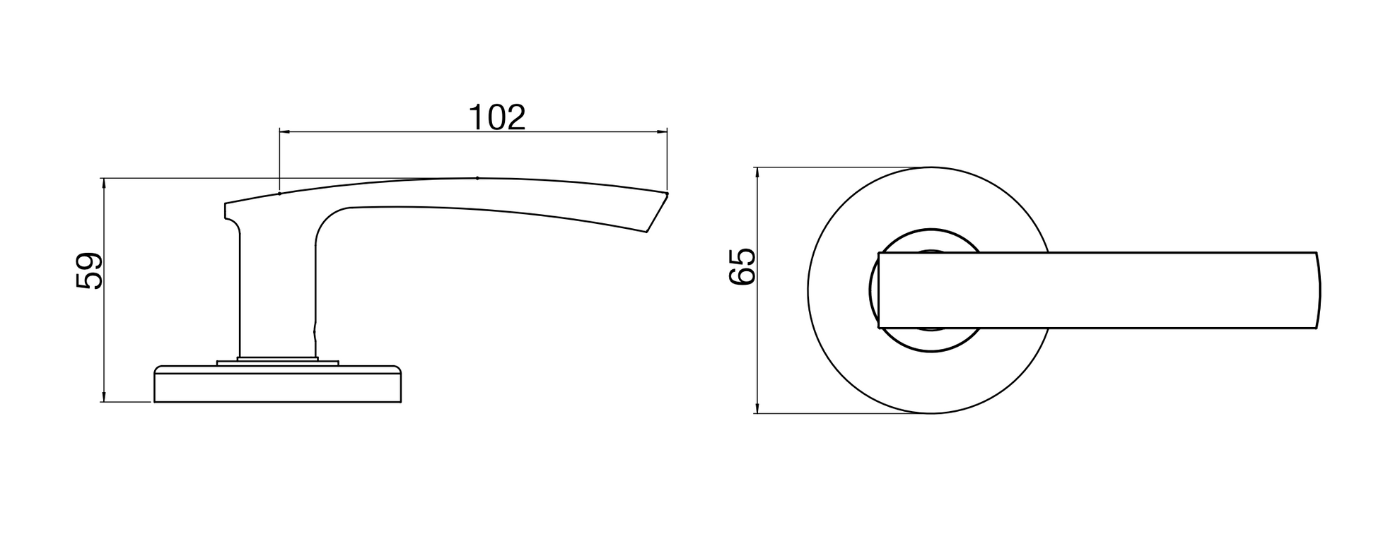 - A Non-handed Door handle, designed to rotate into the correct position for use on both left and right hand doors