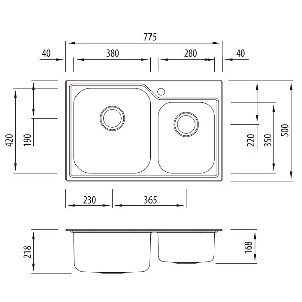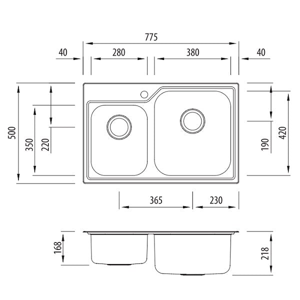 • Secondary Bowl size 280mm x 350mm