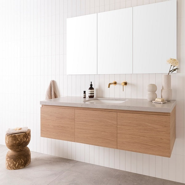 Image One & Two: ADP Glacier Pro Shaving Cabinet 1200mm. Pictured with Glacier Pro All Door Slim Vanity with Caesarstone.