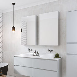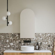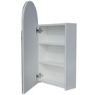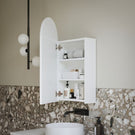 - Versatile arched shaving cabinet suits a wide array of design styles