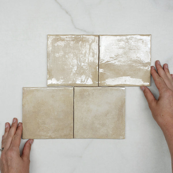 Beige Malee Gloss Hand Made Spanish Ceramic Tile 130 x 130 x 8mm Sample