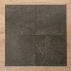 - Muted mid grey stone-look porcelain tile with a matt finish