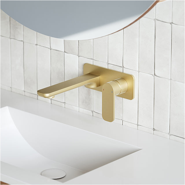 Caroma Luna Lead Free Wall Basin/Bath Mixer Brushed Brass