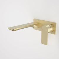 Caroma Urbane II 180mm Lead Free Wall Basin/Bath Mixer Rectangle Brushed Brass