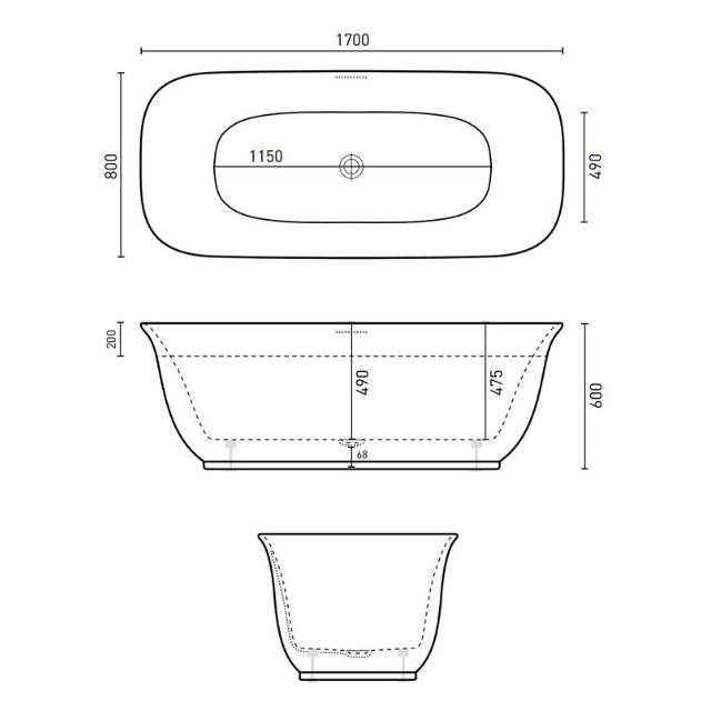 Decina Lola 1700mm Freestanding Bath with Overflow