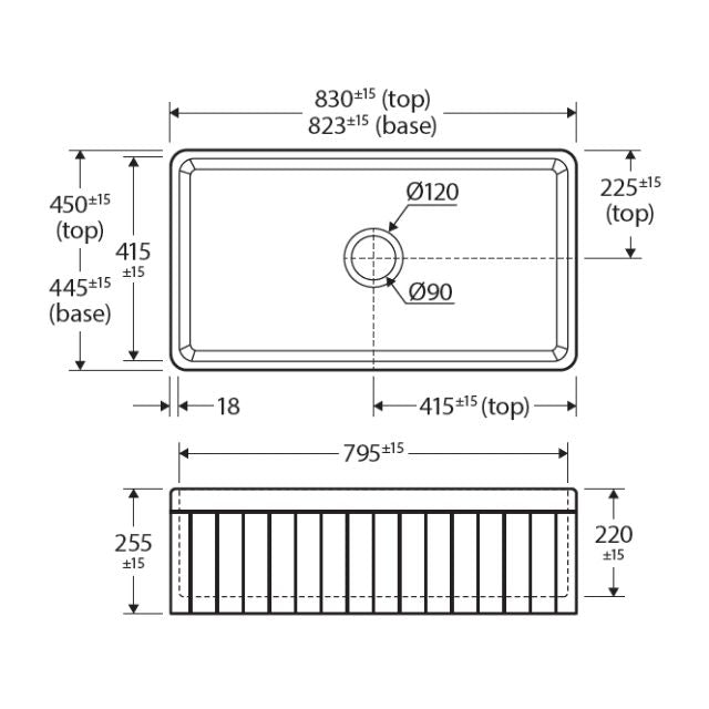 Introducing the Fienza Benson Butler Sink - a large, reversible sink made from durable fire clay. With a sleek matte black finish and a unique fluted and flat design, this sink is both stylish and functional. Measuring 828x452x254mm, it's spacious enough for all of your kitchen needs. Upgrade your kitchen with this must-have sink.